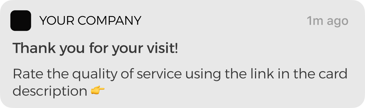 Automatic PUSH are automatically sent 1 hour after purchase. Clients are invited to leave feedback on the service quality.