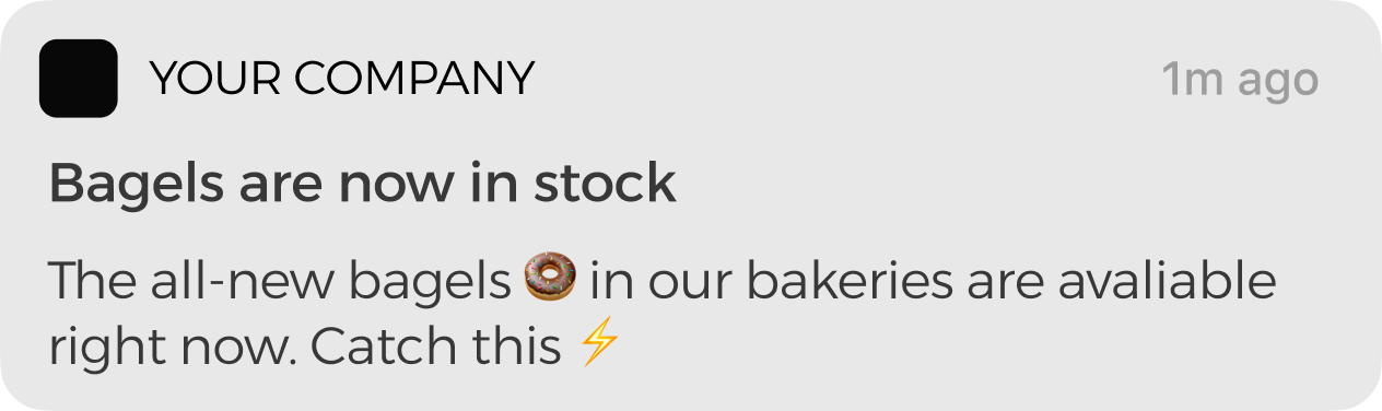Notifications can be sent manually like SMS. Send PUSH messages to your entire customer base or a selected group.