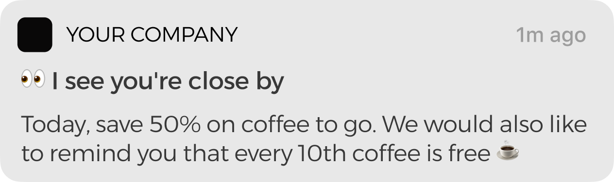 When a customer is within 330 feet (100 meters) of your business, their phone will automatically receive a lock-screen notification. This acts as a powerful "digital sign" to remind them to stop in while they are nearby.